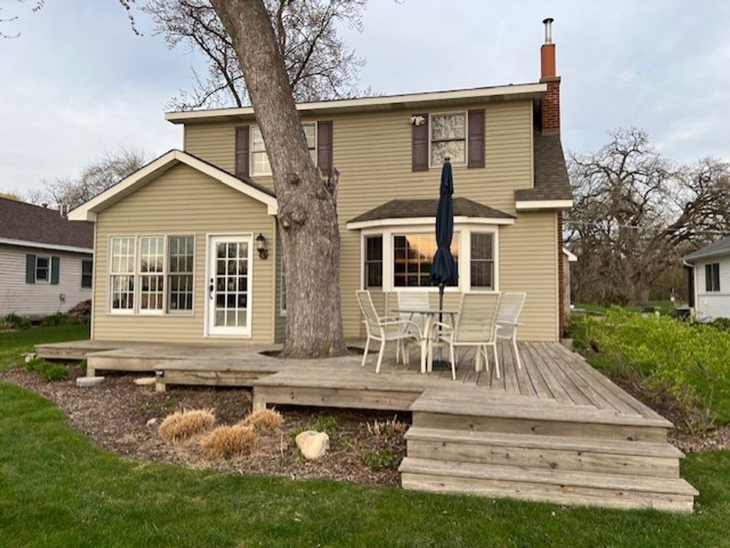 Nestled along the Fox River, this lovely home is a perfect blend of charm and modern comfort. Enjoy stunning water views from nearly every room, creating a serene and picturesque atmosphere. The spacious main floor features an open-concept dining and living room combo perfect for gathering and entertaining. Plenty of natural light streams in making the space feel warm and inviting. The layout allows for seamless flow and flexible furniture arrangements to suit any style. A 4-season room provides a perfect spot to relax and take in the beauty of all four seasons. The kitchen has SS appliances and built-in cabinetry with glass doors to display your favorite dinnerware, crystal, heirlooms, etc. A main floor full bath adds accessibility and the roomy laundry room ensures functionality. The second floor of this home offers a generously sized primary bedroom with walk-in closet and an additional "shoe closet", providing a tranquil retreat with plenty of space for a cozy seating area or additional furnishings. The large second bedroom is equally inviting. A second full bath is located on this level. A thoughtfully designed desk area is also situated on the second floor, perfect for working from home, studying, or creative projects. Step outside to a sprawling deck that's perfect for outdoor living and dining. The deck provides an ideal spot to take in the serene river views. This outdoor oasis is a true extension of the home's charm and functionality. The lush perennial gardens bloom beautifully, adding vibrant color and character to the landscape. The oversized 2-car heated garage has an insulated ceiling and pull-down stairs for easy loft area storage. This riverfront gem is an idyllic retreat for year-round living!