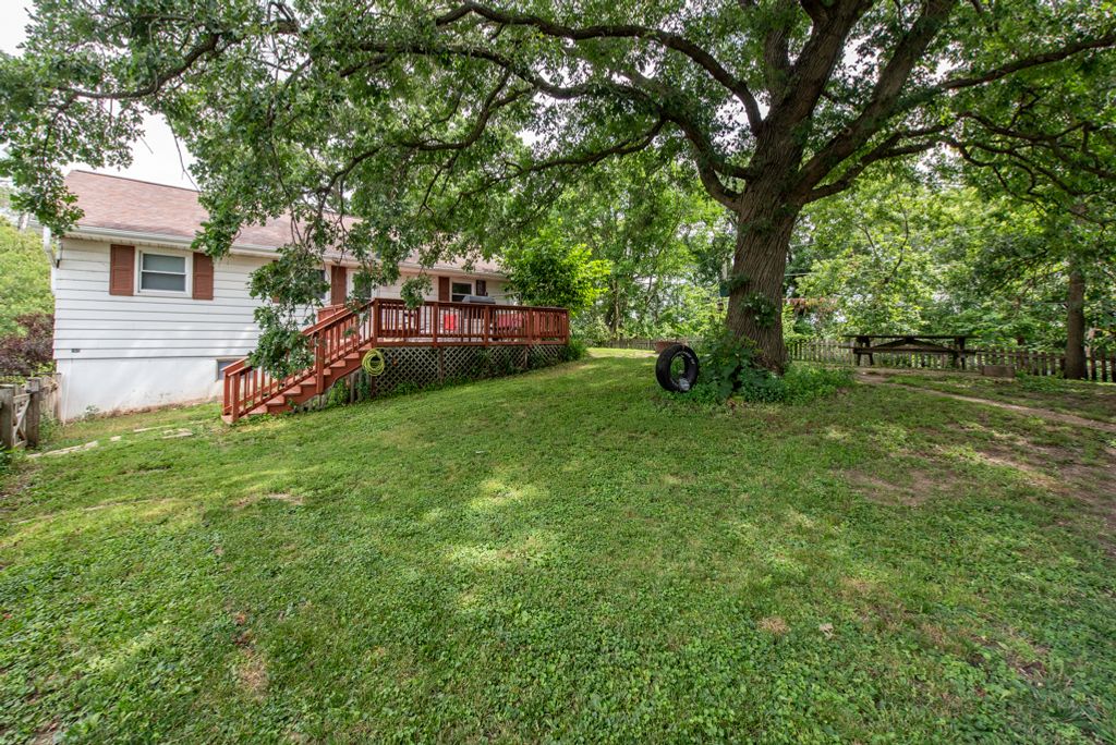 Charming Ranch on a Quiet Dead-End Street with Basement & Spacious Backyard! This well-maintained ranch home offers a warm and inviting layout in a peaceful setting. Located on a quiet dead-end street, this home features a bright, eat-in kitchen with updated countertops and modern appliances, perfect for everyday cooking and entertaining. The living room is filled with natural light, highlighted by beautiful hardwood floors and a lovely view. The main floor includes two carpeted bedrooms, both with ceiling fans, plus a primary bedroom with a walk-in closet and hardwood flooring. The updated full bathroom adds a fresh, modern touch. Downstairs, the partially finished full basement offers great space with a fourth bedroom, laundry area, and a workshop with exterior access-ideal for projects, storage, or additional living space. Enjoy outdoor living in the fenced backyard with a large deck, perfect for relaxing or entertaining. Additional highlights include a 1-car detached garage, updated electrical, newer windows, and a newer roof.