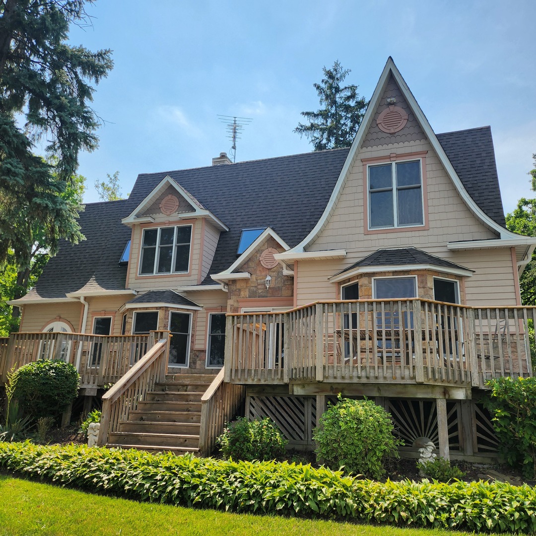 Charming doesn't begin to describe this beautiful home. Spacious open floor plan, great for entertaining. Water views from almost every room!!! 1800 square feet of deck surrounds your new home to be so that you can enjoy the 171' feet of water frontage on Lake Catherine, one of the sought after lakes of the Chain. Take in the beautiful view from sunrise to sunset. Quality was never spared in the upgrades. All the character of a formal cape cod with beautiful trim, and built-in's. Ceramic and Hardwood floors. Large primary bedroom, with a primary closet so large, it warranted its own measurements in the listing. The ensuite boasts a huge primary bathroom, with a soaker tub. Your kitchen has hickory cabinets, granite counter tops, along with stainless steel appliances. Lakeside, you have a concrete seawall and a pier. There is a running pond with lily pad's right in your own yard. If that is not enough, you are adjoining to the members only HOA property, giving you easy access to the clubhouse, playground, picnic area, boat ramp, and of course a beach. Must already have a preapproval for viewings.