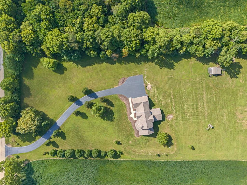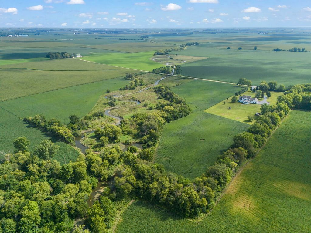 40 Acres of Country Living at Its Finest~~~If you've been dreaming of a property where you can create your own barns, stables, and outbuildings-without inheriting someone else's worn-down structures-this is it. Set on 40 acres of farmland, woods, and creek, this 4,500 sq ft custom-built farmhouse combines modern comfort with endless possibilities. A long private blacktop driveway leads to the oversized 3-car garage (900 sq ft) with extra-tall ceilings, perfect for working on vehicles or storing equipment. The recently painted exterior (2025) and brand-new roof (2021) offer timeless farmhouse charm with lasting durability, while the land itself is a true highlight: approximately 24 acres of tillable fields, a wooded section with mature trees, and a scenic stretch of Indian Creek winding diagonally across the property. The wide front porch-complete with a porch swing-sets the tone for relaxing farmhouse moments. Inside, soaring 10-foot ceilings and refinished hardwood floors welcome you in. The spacious kitchen is equipped with a Viking 6-burner stove, stainless steel range hood, double oven, and custom hickory cabinets, making it a chef's delight. At the rear of the home, the vaulted great room with exposed beams overlooks the private backyard-an ideal spot to watch deer, turkeys, and even bald eagles. The thoughtful floor plan includes a main-level master suite, home office, and laundry, plus radiant floor tubing installed in the garage and basement for future comfort. Upstairs, you'll find four bedrooms, two full baths, and a huge bonus room-perfect for a hobby space, game room, or studio. The unfinished basement, already roughed in for a full bath, offers even more potential to expand. New carpet in all bedrooms (2024) ensures a move-in-ready feel. Here, you'll enjoy the best of both worlds: quiet country living with privacy and space, yet still just a short drive to Chicago Road, the western suburbs, and Shabbona Lake State Park with its fishing, hunting, trails, and nearby golf course. Best of all, it's not in a subdivision-just wide-open skies, a slower pace, and the warmth of a small, family-friendly community. Students here attend Indian Creek Schools. Whether your dream is farming, hunting, fishing, or simply enjoying clean country living, this property offers unmatched potential.