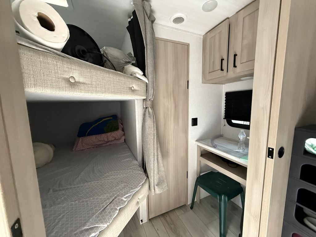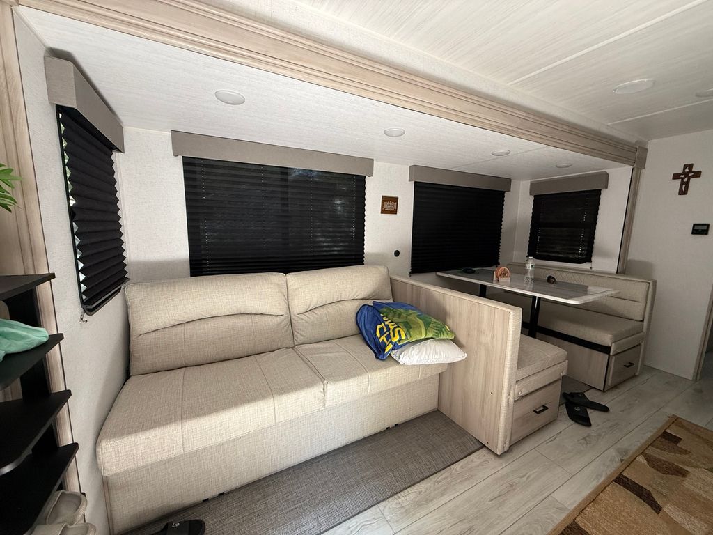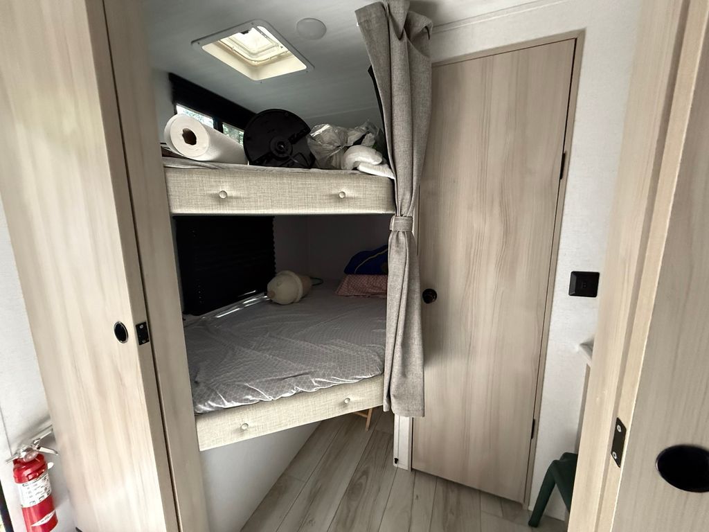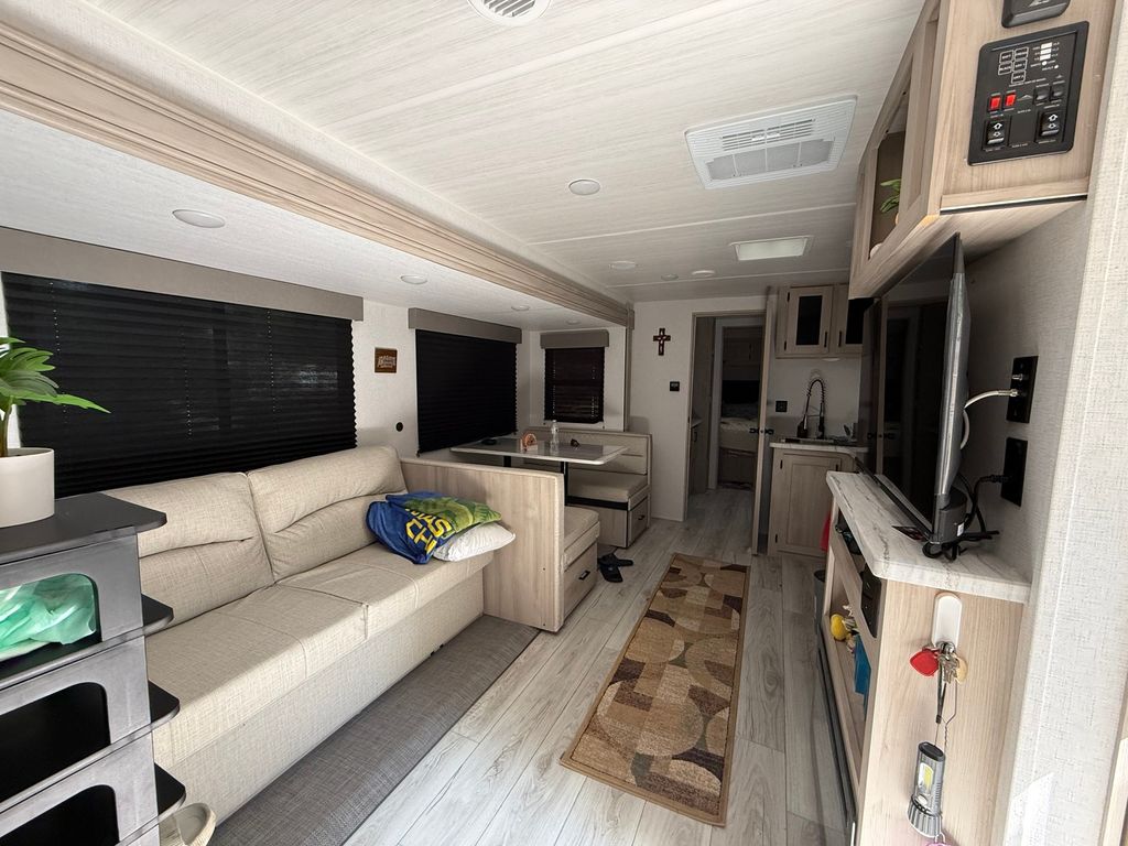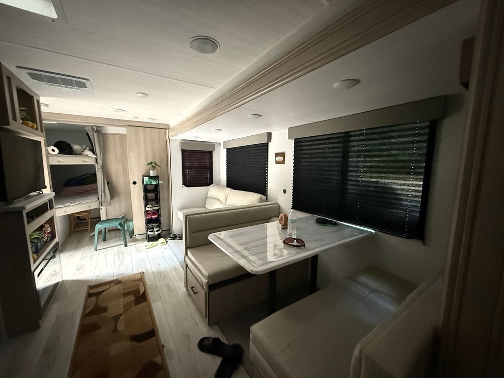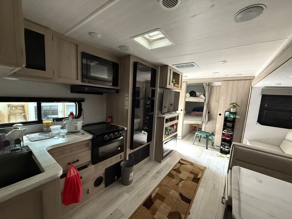 Stunning 2024 East to West Della Terra 300DB Travel Trailer, perfectly set up on a shaded, level lot near Bass Lake, Sunset Lake, the comfort station, and other great amenities. This modern travel trailer features beautiful finishes throughout and comes fully equipped with all appliances, plus two LP tanks for extended use. With plenty of room to sleep family and guests, the layout includes a private main bedroom, a bunk room, a converting dinette, a sofa, and a spacious room addition with new carpet and fresh paint (2025), offering even more sleeping space. For added convenience, the unit includes 1.5 bathrooms-one at each end. Outside, enjoy entertaining and relaxing with a large deck, an awning for shade, and an outdoor kitchen perfect for summer meals. A picnic table and fire pit area make outdoor gatherings even better. The property also includes extended utilities, thoughtful landscaping, a 10x10 storage shed, and even a boat and trailer-both included in the sale. Whether you're looking for a weekend retreat or a seasonal getaway, this turn-key setup has everything you need to start making memories right away. Please note that Woodhaven Lakes is a gated recreational community and cannot be used as a primary residence or homestead. You must be accompanied by a broker to view any properties, YOU CANNOT ACCESS THE CAMPGROUND WITHOUT A PASS. The property owner pays the association fees.